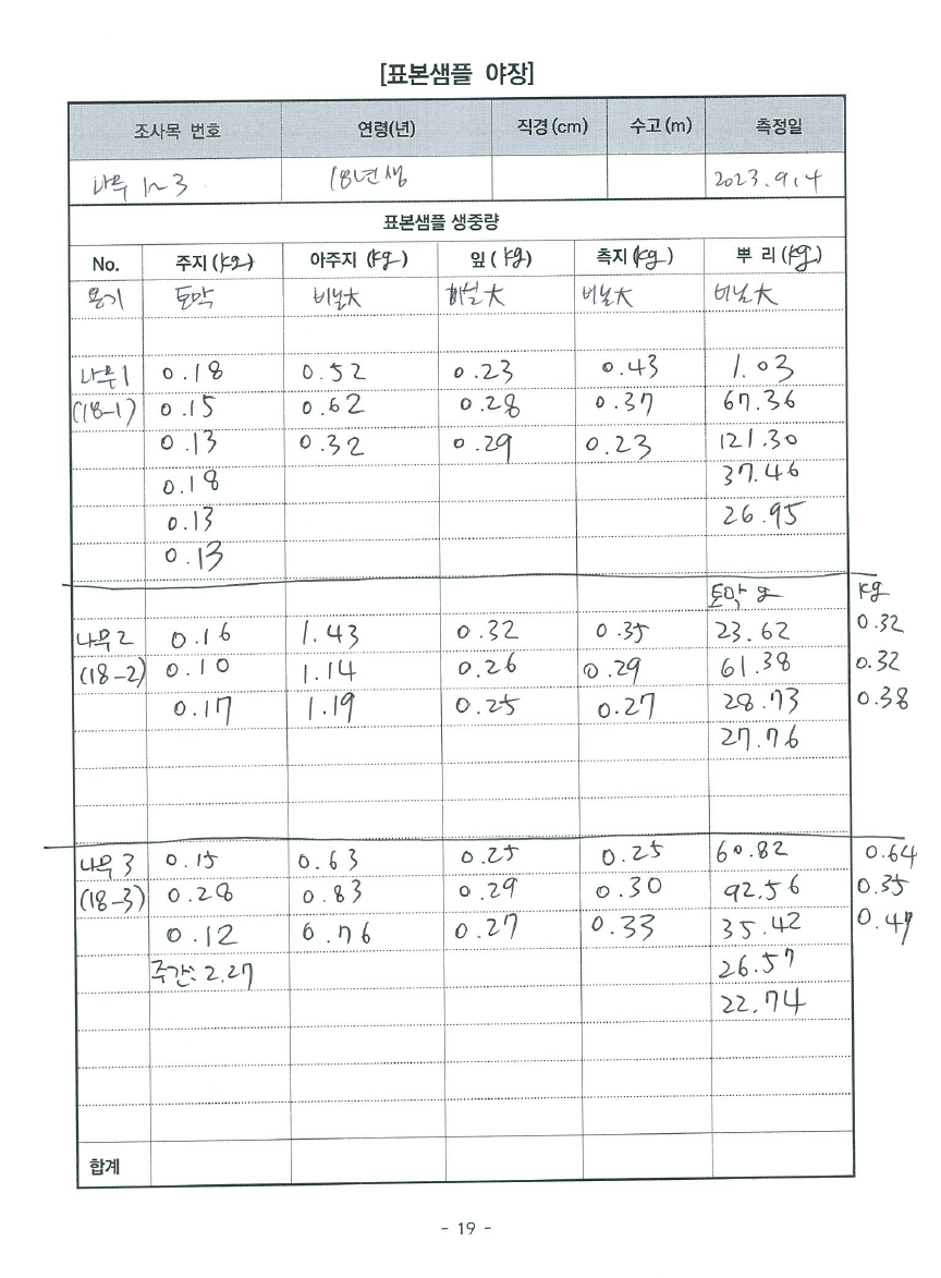 수령 | 직경 | 수고 | 뿌리 굴취 여부 |